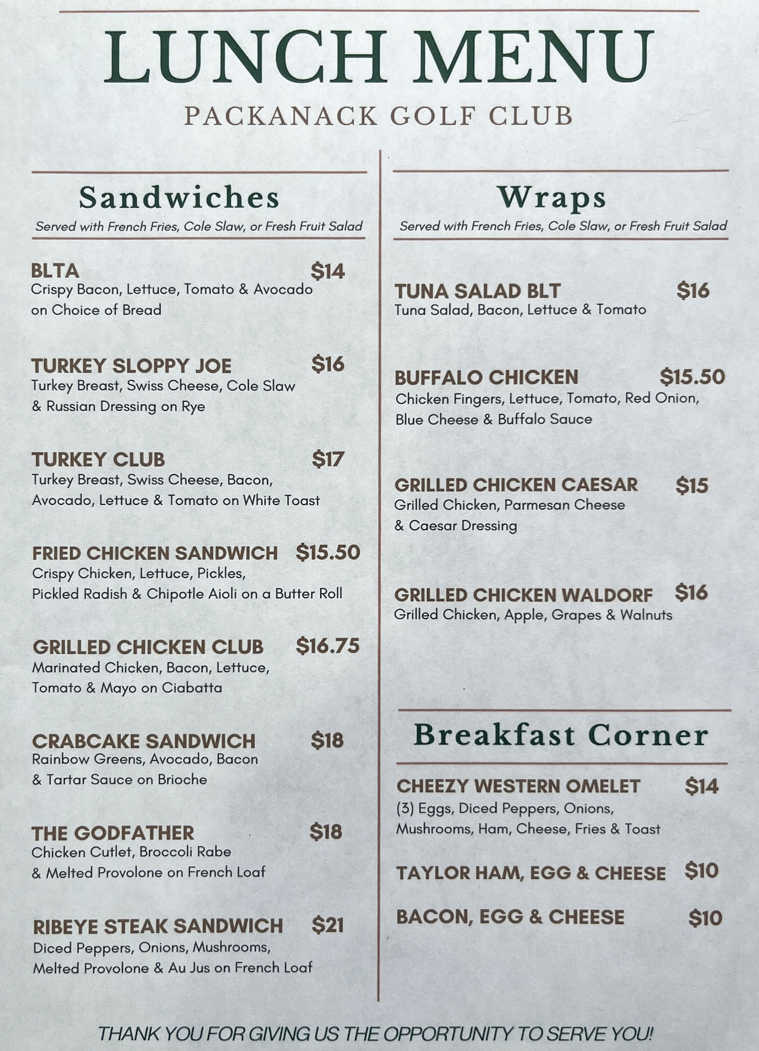 Lunch Menu